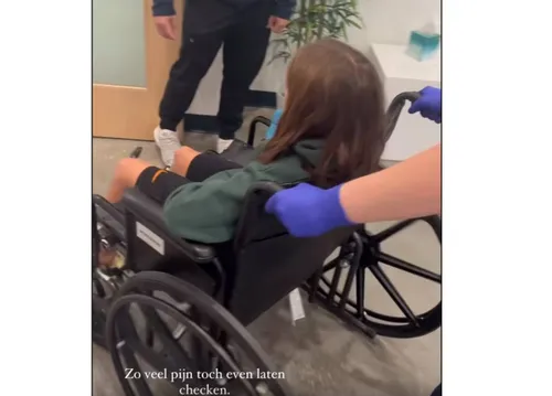 Het werd geen 'opstaan en doorgaan' voor Xess: Hij bleek zo heftig geblesseerd te zijn geraakt dat hij letterlijk het veld eraf is geschopt. Yolanthe heeft hem naar het ziekenhuis gebracht: "Zo veel pijn, toch even laten checken." Xess kon niet meer zelf lopen en werd in een rolstoel verplaatst. ,,Zijn enkelband is gescheurd, maar hij gaat toch stoer naar school!”