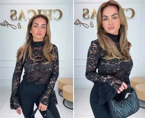 We zien hoe Sarah poseert met een topje van het merk Chica's in de kleur zwart. Het topje is zeer uitdagend omdat het transparant is, het staat haar natuurlijk erg goed, maar de reden dat ze viral gaat is niet de stof de kleur. Mensen in de comments hebben het toch vooral over haar opvallende rondingen die door haar kledingkeuze de grote blikvanger zijn.