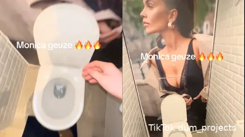Monica, compleet met een levensgrote afbeelding van haar aan de muur. De spoelknop op een wel heel opvallende plek geplaatst: midden in haar decolleté. De beelden verspreidden zich razendsnel en het internet had er meteen een mening over. In de video loopt de eigenaar van het toilet de ruimte binnen en zoomt de camera in op de gigantische poster. De manier waarop de spoelknop is verwerkt, zorgt voor een nogal suggestief effect, wat sommige mensen hilarisch vonden en anderen juist ongemakkelijk.