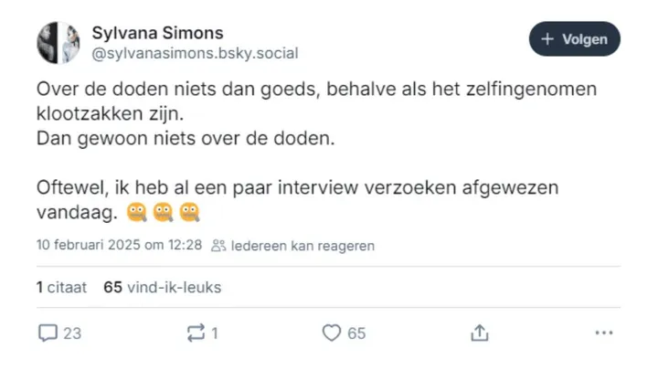 De post van Simons, waarin ze een scherpe kritiek uit op Brandsteder, heeft een storm van reacties veroorzaakt op verschillende social media platformen. Duizenden mensen hebben gereageerd op de berichten en de ophef lijkt nog niet te zijn geluwd. Meningen zoals deze zijn te lezen: "Je kan ook even niets zeggen" "Kun je dit niet even inhouden?" "Hij heeft ook familie."