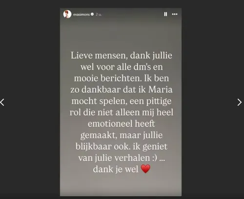 In de dagen na de uitzending ontving Eva Simons talloze berichten van steun, begrip en bewondering. Via Instagram bedankte ze haar volgers en kijkers van The Passion: “De lieve berichten helpen me echt. Ze betekenen zoveel, zeker na zo’n emotionele periode.”